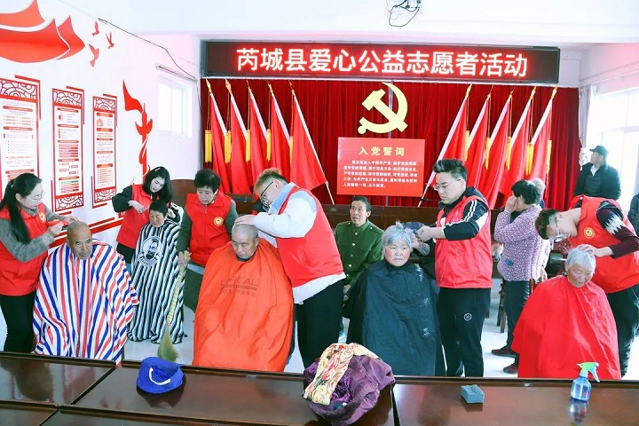 本次活動經(jīng)過精心籌備,芮城縣愛心公益志愿者協(xié)會的30余名志愿者分工明確,廚師組、后勤組、理發(fā)組、義診組、文藝演出組,他們緊張有序地忙碌著,為老人們提供各項(xiàng)志愿服務(wù)。