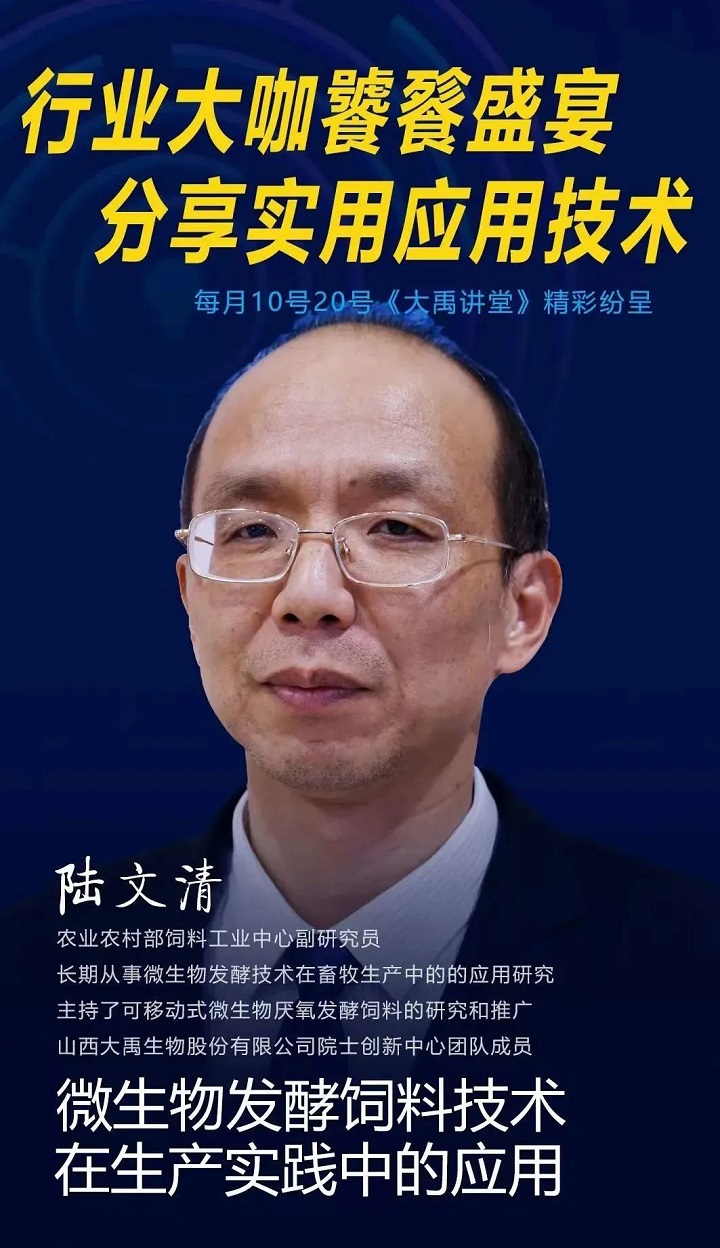 《大禹講堂》是大禹生物技術團隊內(nèi)部技術培訓、交流平臺,每月的10日、20日進行兩期。本期陸文清老師重點講解了發(fā)酵飼料的生產(chǎn)應用和糞污處理的發(fā)酵技術。