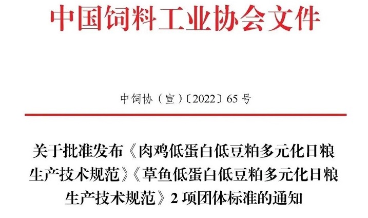 飼料工業(yè)協(xié)會(huì)批準(zhǔn)發(fā)布《肉雞、草魚低蛋白低豆粕多元化日糧生產(chǎn)技術(shù)規(guī)范》兩項(xiàng)團(tuán)體標(biāo)準(zhǔn)